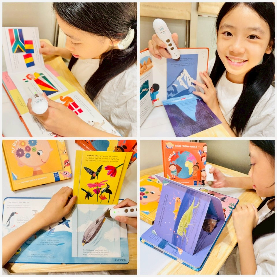 最後一點,也是我自己很重視的部分 - 英語學習。透過圖像與翻頁,孩子可以先理解內容,再搭配點讀功能去聽中文或英文解說,讓語言變得很自然。